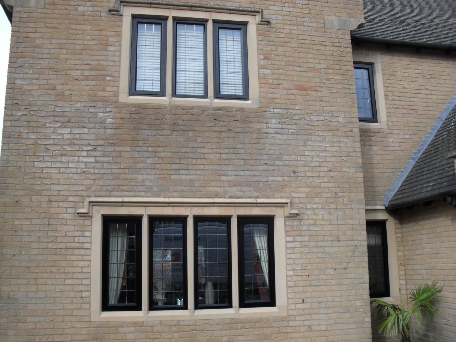 Look how great these, Black ALUK Aluminium windows fitted into stone mullions with rectangle lead glazing, that we fitted for our customer looks!